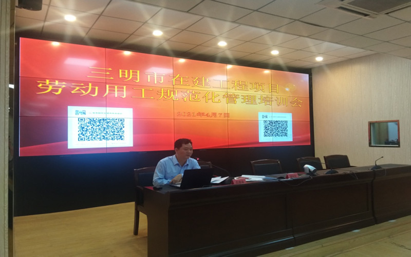 为迎接国务院保障农民工工资支付工作考核,继续深化“无欠薪项目部”创建工作,市人社局会同住建、水利、交通、铁路建设等行业主管部门,于4月7日下午,在市社保大楼二楼会议室组织召开三明市在建工程项目劳动用工规范化管理培训会议。市人社局、住建、水利、交通、铁路建设发展中心有关科室负责人、市本级在建工程项目建设单位负责人、施工单位项目经理及劳资专管员等50余人参加会议。