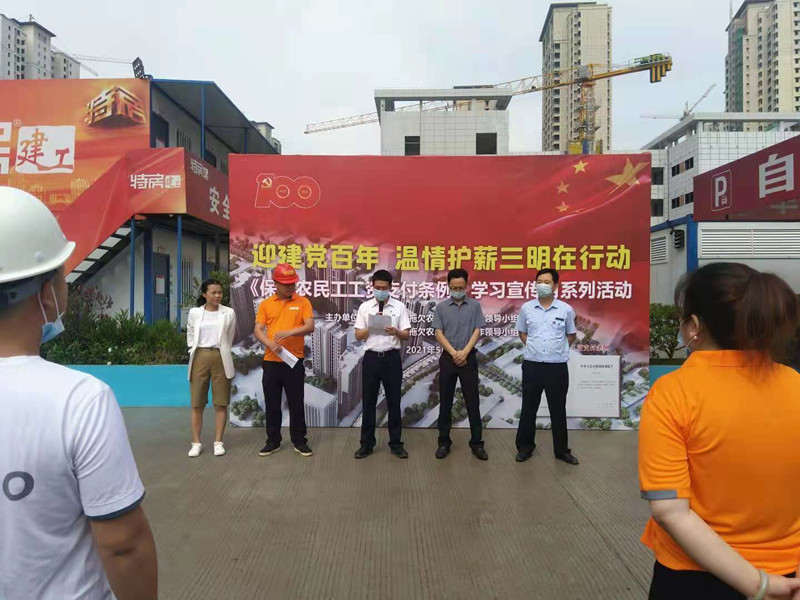 为深入开展建党百年“护薪”行动,进一步加强《保障农民工工资支付条例》(以下简称《条例》)的学习宣传和贯彻落实,根据省上统一部署,5月19日上午,三明市各地集中开展建党百年“护薪”行动暨《条例》实施周年集中宣传活动。本次活动由市、县根治拖欠农民工工资工作领导小组办公室牵头,各级人社、住建、交通运输、水利、公安、法院、工会和信访等部门共同参与。