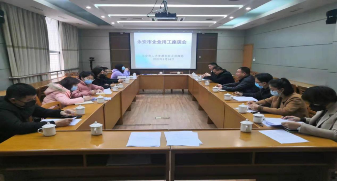 为进一步支持企业稳岗稳工,保障企业用工需求、保障节后全面复工复产,助力我市经济一季度“开门红”打好基础,2022年1月24日上午,永安市人社局召开企业用工座谈会,和其昌、翔丰华、海西重汽、建新轮胎、科宏生物、深瑞墨烯、燕航纺织等14家重点用工企业参加了座谈。