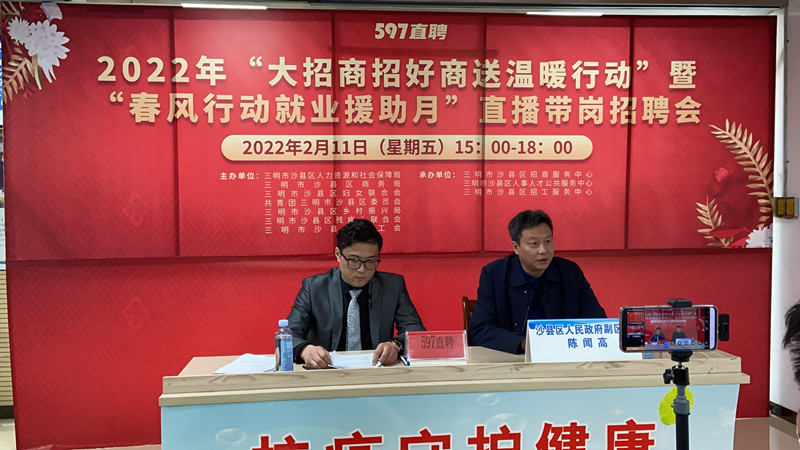 为支持企业稳岗稳工,保障今年春节期间和春节后企业开工用工需求,2月8日-15日,沙县区人社局联合区总工会、区商务局、区妇联、团区委、区乡村振兴局、区残联等相关部门,举办“春风送岗 真情相助”新春招聘会,开启线上+线下招聘,沙县区副区长陈闻高助力带岗,推动企业一季度“开门红”。