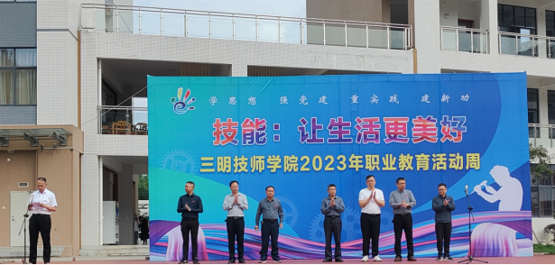 5月9日上午,三明技师学院隆重举行2023年职业教育活动周启动仪式,本次活动的主题是:技能,让生活更美好!