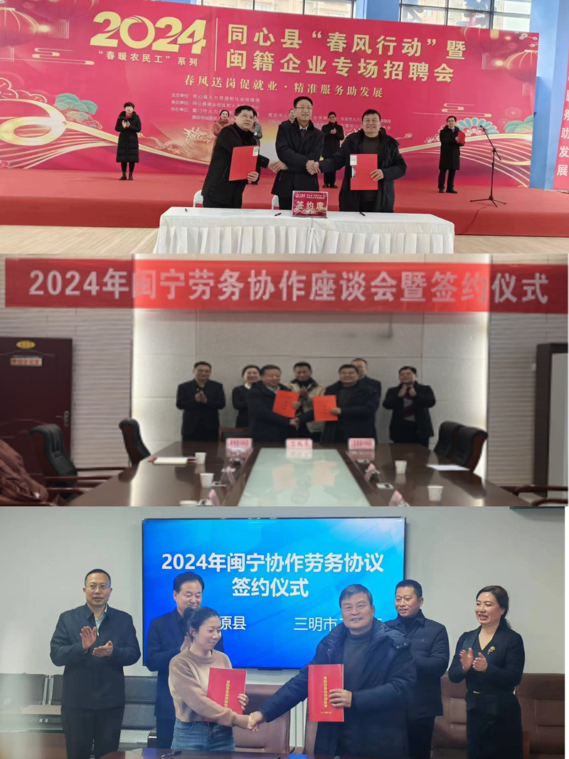 为切实保障企业用工需求,加强区域人力资源交流合作,多渠道引进外来劳动力,确保实现一季度“开门红”,推动“红色领航、生态领向、产业领跑、改革领先,促革命老区高质量发展”工作。抓住省人社厅大力推动省际劳务协作的契机,从正月初八至正月十四,三元区人社局局长,陪同福建省劳动就业服务局副局长吴伟平前往宁夏开展闽宁劳务协作座谈暨签约活动,与原州区、同心县、海原县等人社局签订劳务协作框架协议。此前,三元区人社局已与张湾区、竹山县等4个湖北省区(县)人社部门签订劳务交流合作协议书,并持续在当地企业招聘会现场同步发布三元区招聘岗位信息,助力三元区招工引才。