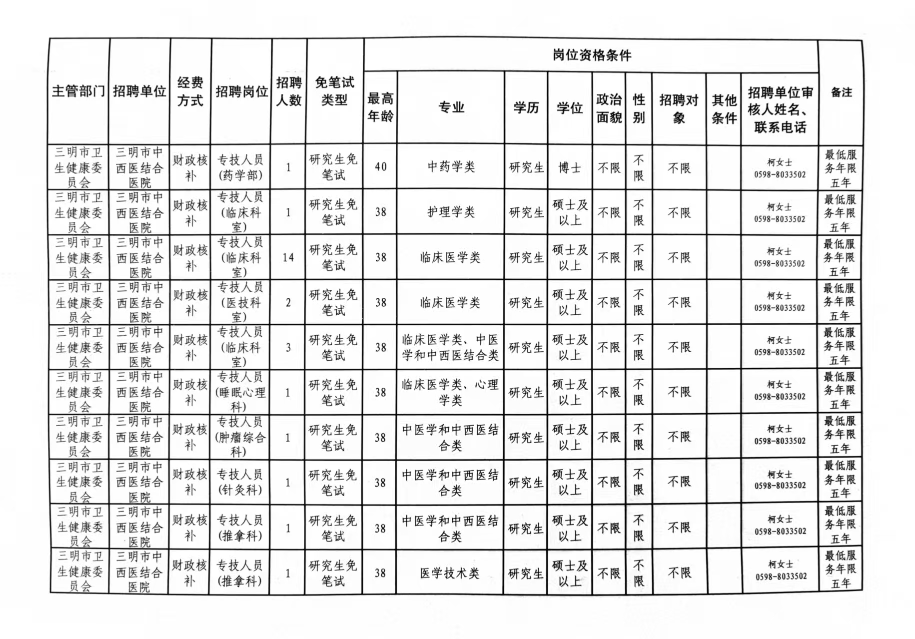 附件:1.三明市2026届医疗高层次人才专项公开招聘岗位信息表